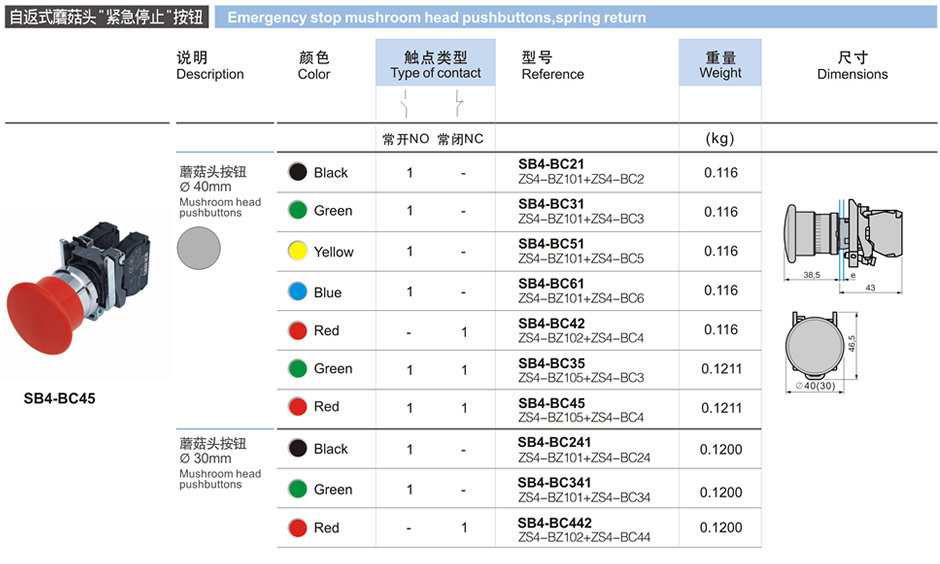 自返式蘑菇頭"緊急停止"按鈕