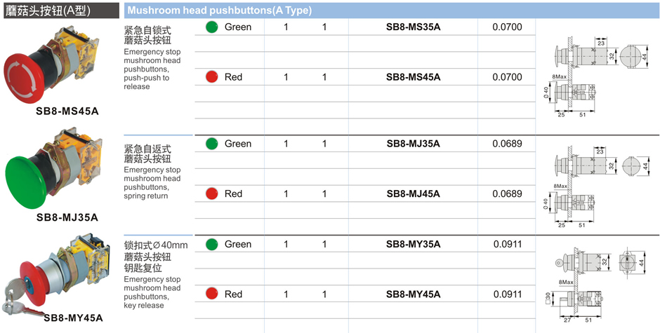 蘑菇頭按鈕(A型)